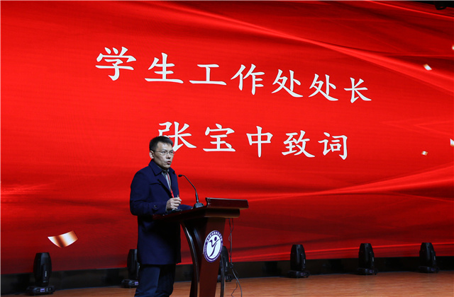 大会开幕,全体起立,齐唱国歌。学工处处长张宝中对此次活动作重要讲话。他代表学院向各位获得国家奖学金的同学表示热烈的祝贺,通过近期自身阅读、学习所产生的感想感悟与在座的每一位同学进行分享,希望每一位同学都能够在所听、所闻、所学中多思、多想、多问,与此同时鼓励每一位在场的同学勇做时代的弄潮儿,既要学习榜样,更要成为榜样,在实现中国梦的生动实践中放飞自己的青春梦想,书写属于自己绚烂的人生华章。