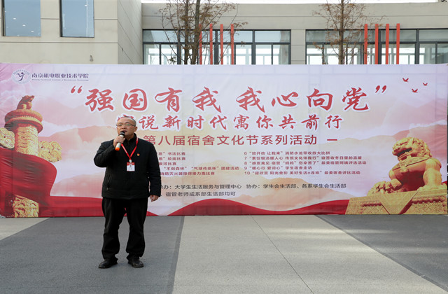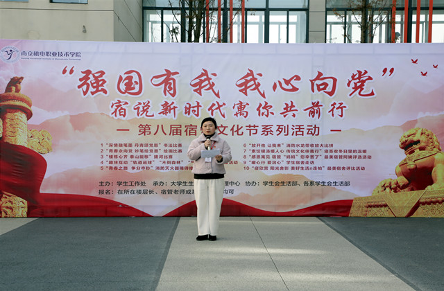为厚植我校师生浓浓的爱国情怀,营造出有爱、有趣、有情怀的宿舍文化氛围,建设好“理念新、机制新、面貌新、成效新”新机电学院,提高我校宿舍文明建设,充分调动、发挥学生的主观能动性,增强团队合作能力和宿舍成员之间的凝聚力,逐步深化宿舍文化生活内涵。2021年12月21日下午13时,“强国有我 我心向党”之宿说新时代寓你共前行第八届宿舍文化节开幕式在学生公寓润思生活服务站前广场顺利举行。我校党委委员、副院长赵学洪,学生工作处处长张宝中,后勤处处长周志刚,东吴物业项目经理薛蒙以及各系部书记,学生干事,全体辅导员老师、物业管理员和学工处老师出席了开幕式。