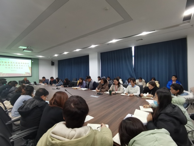 随后,张处长对学校第五届辅导员素质能力大赛初赛进行了总结分析,针对基础知识测试、主题班会、案例研讨三项比赛成绩详细剖析,带领参赛辅导员对标找差,固强补弱。