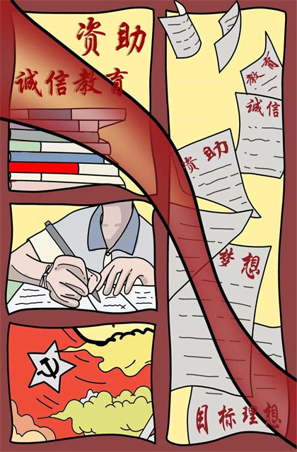 为增强学生的诚信、感恩意识,宣传大学生资助政策,构建以诚信为荣的文化氛围。机械工程系于五月开展了“诚信资助”主题月活动,期间主题海报赛项采用线下绘制和线上电子版设计的方式,学生们用独具艺术风格的设计讲述了资助育人成果。