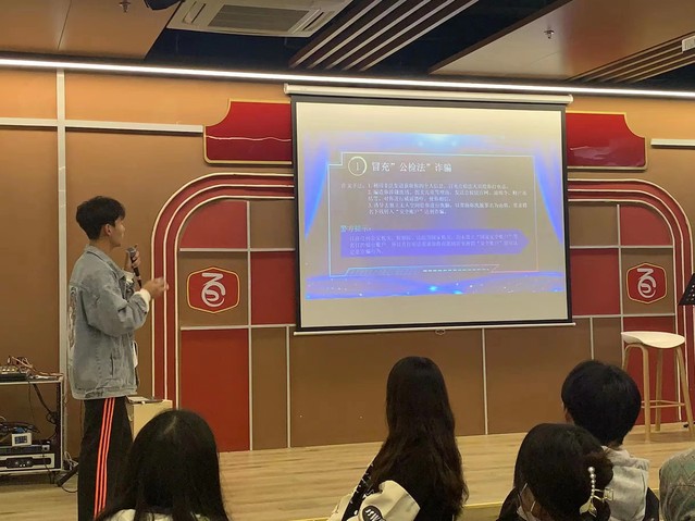 为进一步加强我校学生电信网络诈骗的防范能力,提高广大师生防范电信网络诈骗的安全意识,预防和减少电信网络诈骗案件的发生,营造文明、安全的网络环境。由校学生会主办的第十四期优秀学子分享会暨反诈宣讲活动于2022年10月6日下午在学校蓝岛餐厅二楼小剧场举办。本次优秀学子分享会由校学生会副主席、信息工程系单均昶同学担任主讲人,校学生会主席、人文社科系张馨月担任主持人,各系60余名同学参加本次活动。