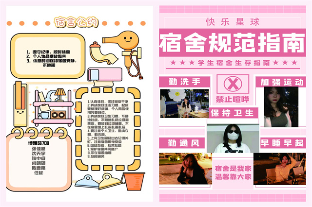 在大学生健康成长中心举办的“DIY宿舍公约”主题活动中,同学们积极参与,收到了不少优秀的作品!