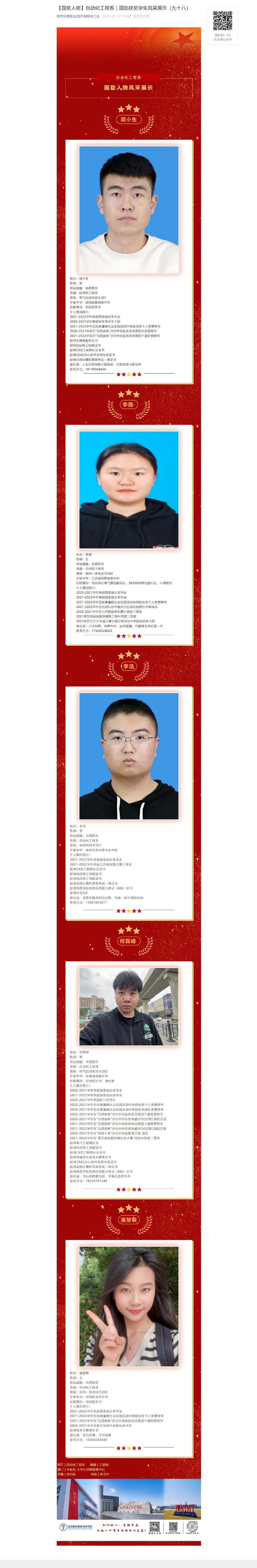 【国奖人物】自动化工程系|国励获奖学生风采展示(九十八)