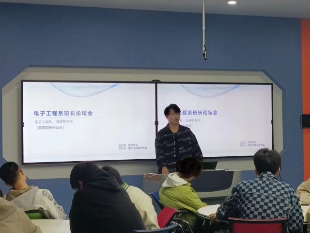 为构建群策群力、经验共享、智慧共鉴的对话合作平台,打造出色班长队伍,培养班干部在班级中更好的发挥先锋模范作用的意识,提高班级凝聚力,促进同学之间的交流和合作。由校学生会主办,电子工程系承办的第四期班长论坛于2023年4月25日在思学楼409顺利开展。电子工程系学生会文体部干事朱彤彤担任主持人,电子工程系全体班长参加活动。