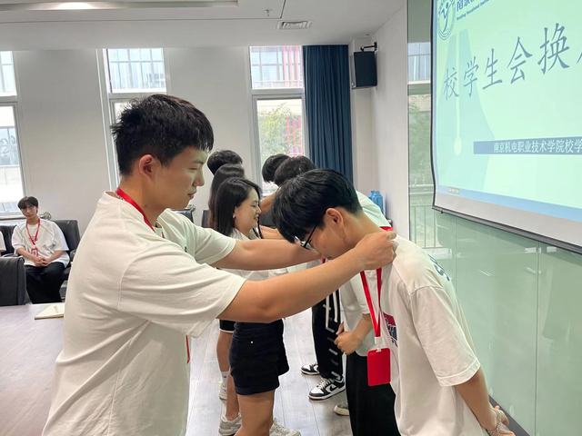 学生会的工作顺利进行,离不开每一位学生会成员。这是一份荣誉,也是一种激励和一种肯定。作为新时代学生会干部,将以身作则,接好交接棒。随后,上一届校会成员为新一届校会成员进行授牌。