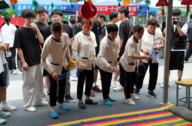 投壶游戏具有上千年的历史传统,是中华民族宝贵的非物质文化遗产。射五毒寓意着“强身健体”,通过射五毒来提醒人们注意防范毒虫,也有无病无灾的美好祝愿。同学们通过投壶、射五毒、套圈等游戏角逐激烈,获得参与端午民俗体验活动的门票。师生们寻找角度,稳住心态,瞄准投射,活动现场气氛热烈浓厚。