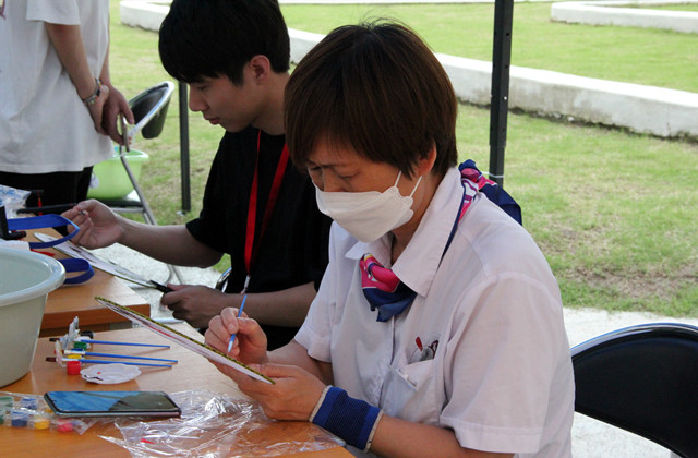 活动现场热闹非凡,老师和同学们手持票券体验着不同的节日游戏,感受到了中国传统文化节日的魅力。在彩绳编织、手工皂、紫草药膏、彩绘鸭蛋、干花书签等手工制作中感受着独有的民俗文化魅力,传递着对周围好友的美好祝愿,让端午节所蕴含的精神价值内化于心、外化于行。