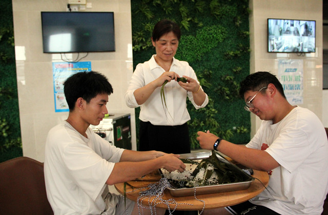 淡淡粽叶香,浓浓机电情,折粽叶、填糯米、裹叶子、扎线……在一道道工序中,同学们锻炼的是动手能力,感受到的是浓浓的节日氛围。