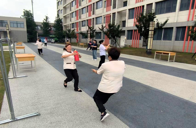 活动伊始,学生工作处大学生生活服务与管理中心主任张进宝强调了本次团建活动安全注意事项,要求活动中保证自身安全,安全第一,比赛第二。在张进宝主任的组织下,气球传纸杯、灭火器接力赛、拔河比赛有序开展。在紧张激烈的活动中,宿管老师、保洁阿姨、工程师傅积极出谋划策,默契配合,在集体中贡献自己力量,挑战自己。