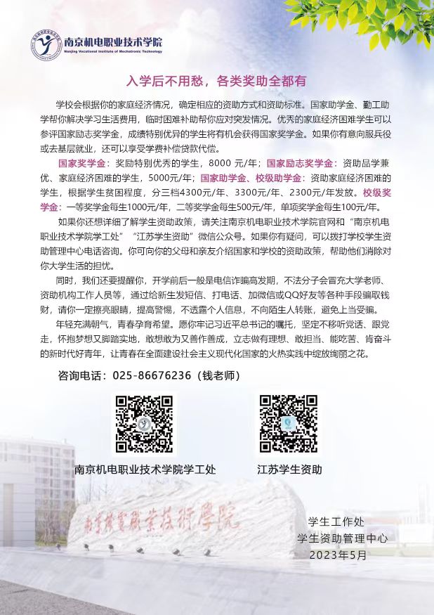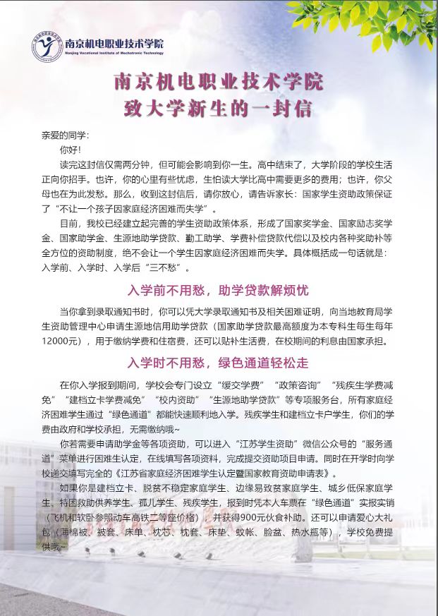 学生资助管理中心致2023级新生的一封信