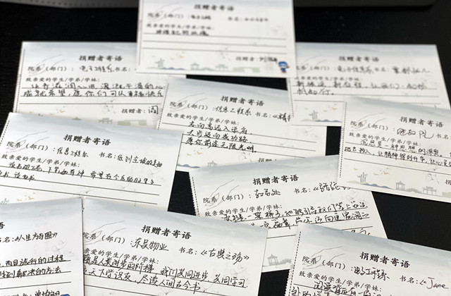 习近平总书记在致首届全民阅读大会的贺信中强调:“希望全社会都参与到阅读中来,形成爱读书、读好书、善读书的浓厚氛围”。好书如师如友,有着穿透人心、跨越时空的力量。2023年6月10日-6月30日期间我校师生捐赠闲置书籍共计500余本,本次捐赠书籍将全部用于一站式社区图书角,捐赠师生在书中夹上了自己对未来读者的暖心寄语。通过本次活动的开展,让书籍“游动了”起来,在学生公寓流传出新的故事。