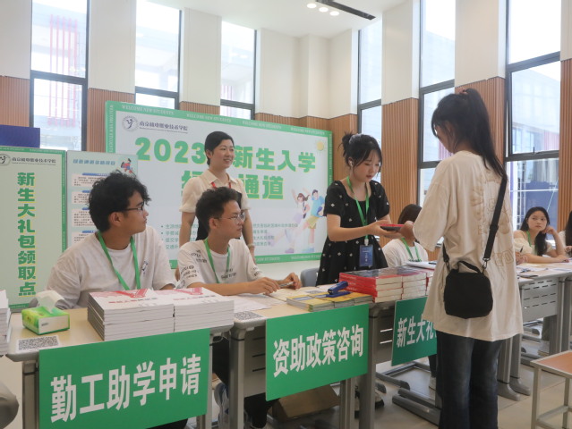 迎新当天,学校开通“绿色通道”报到专区,通过帮助家庭经济困难学生减免学费、生源地国家助学贷款回执提交、伙食补贴、路费补贴等提供暖心服务,助力学生入学无忧愁。同时,现场提供资助政策咨询、勤工助学申请等一站式暖心服务。学校为困难新生提供了价值500余元的“爱心大礼包”,内含被褥、床单、毛巾、热水瓶等生活必需品,让新生在入学之初便感受到来自学校的关怀。