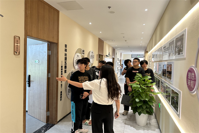 通过讲解员声情并茂、栩栩传神地介绍,同学们深入地了解了学校心理工作的基本情况,也明晰了校园心理成长资源。同时也希望同学们能够关注心理健康工作,加入到助人的队伍中来。大学三年难免会有喜有悲,青春之路也不会一帆风顺,大学生健康成长中心希望提供一个活力、温馨、有爱的环境,当同学们需要时始终陪伴左右。