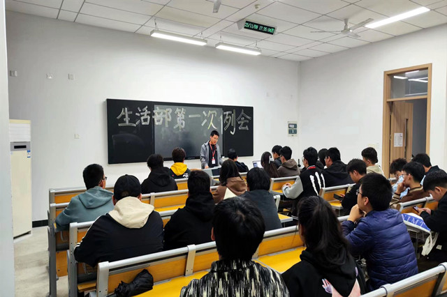 为保证校学生会生活部各项工作的稳步进行,提高部门凝聚力,使生活部成员了解、明白自己的工作重心和工作要领,2023年11月9日校生活部在博学楼305召开了第一次大例会。本次会议由生活部指导老师张进宝主持,校学生会副主席张善义以及校生活部全体成员参加此次会议。