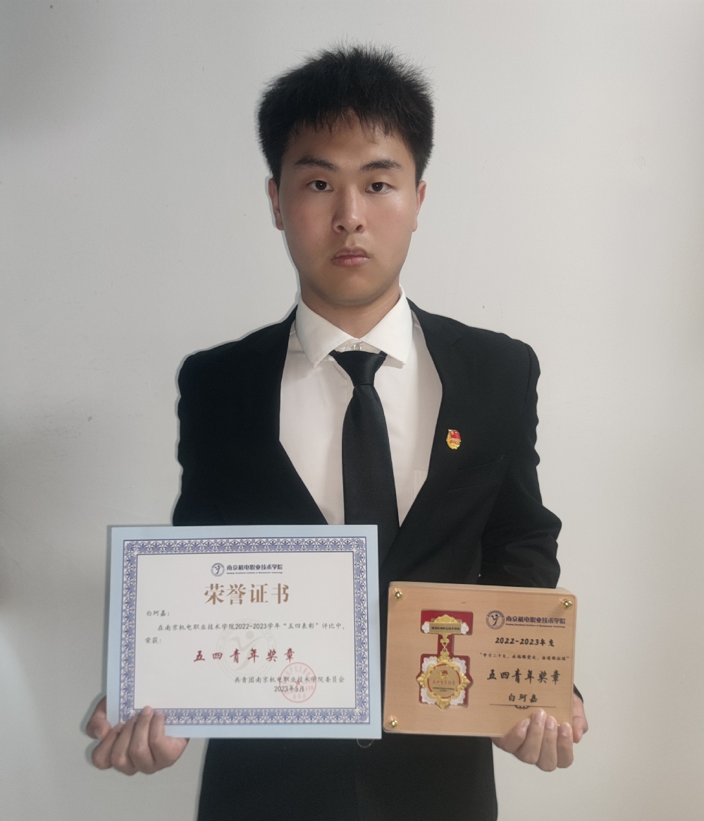 白珂嘉,男,汉族,共青团员,开云手机官方版页面登录入口自动化工程系机电一体化技术专业2021级专科生。曾任自动化工程系团总支学生副书记,机电一体化技术217班宣传委员,润泽苑119宿舍长。荣获了“国家奖学金”等3项国家级荣誉,“第六届江苏省大学生知识产权知识竞赛优秀奖”等2项省级荣誉,“五四青年奖章”等23项校级荣誉,“高压电工上岗证”等11项技能证书,实用新型专利受理1项。