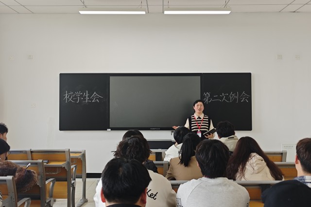 4月9日下午,校学生会在博学楼305教室召开校学生会第二次例会。会议由校学生会指导老师钱莉娇主持,主席团和四部门全体人员出席此次会议。