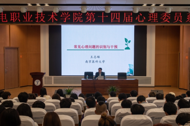 为切实加强我校心理健康教育工作,夯实“学校—系部—班级—宿舍”四级网络体系,推进“润心”行动走深走实,学生工作处大学生健康成长中心于4月23日下午在乐学楼102报告厅开展“大学生常见心理问题的识别和应对”专题讲座,此次讲座邀请南京医科大学心理健康教育与研究中心主任王志琳授课,各系心理气象站站长、大学生健康成长中心全体老师、校学生会心协部、班级心理委员、宿舍楼长、层长以及寝室长代表参加了此次培训。