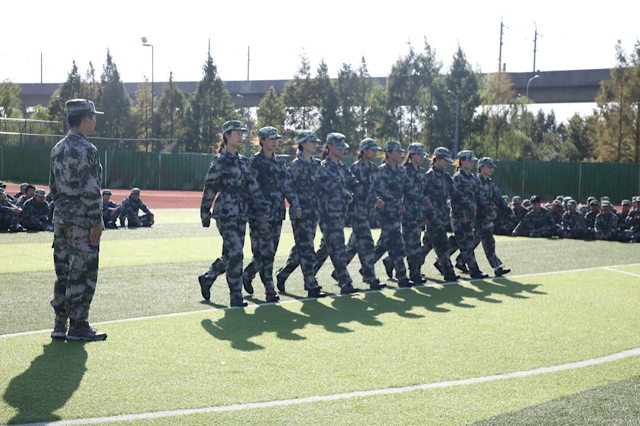 在足球场会操的五营慎行营的同学们。他们以谨慎的态度对待每一个细节,展现了他们的严谨与认真。他们的动作规范、步伐稳健,展现了慎行营同学们的高素质和严谨作风。