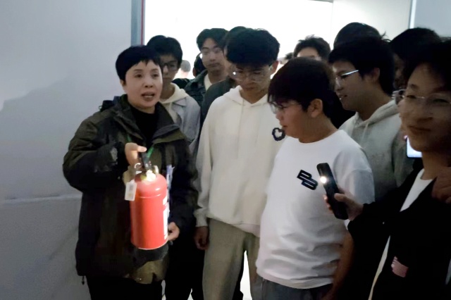 “紧绷安全之弦,筑牢安全防线”。在宿管老师带领下,同学们熟悉了身边的消防器材,走了一遍消防疏散通道。通过宿管老师不时地提问和解惑,将同学们脑中的消防理论知识转化为眼前实物,加深了对消防器材和疏散通道的印象。