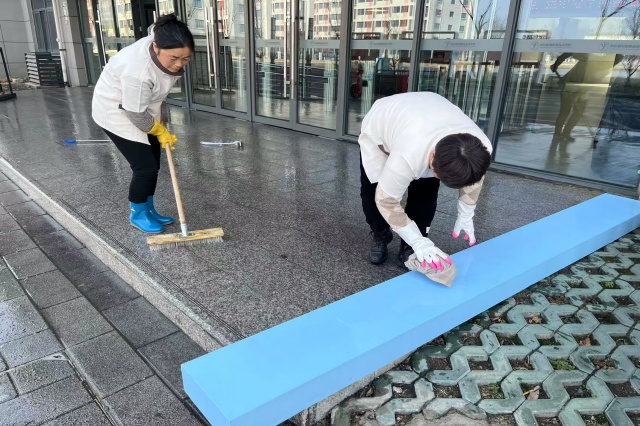 与此同时,公寓保洁人员对门厅、楼道、活动区域开展了深度保洁与消毒工作。他们手持清洁工具,不放过任何一个卫生死角,从扶手到地面,从墙角到门窗玻璃,逐一进行细致清理。在消毒环节,他们严格按照卫生标准,调配消毒剂,对公共区域进行全面喷洒,确保消毒无遗漏,有效降低病菌传播风险,为学生营造健康的生活空间。此外,后勤处还安排专人对公寓内的洗衣机进行全面清洁和擦洗消毒;对开水机、直饮水机更换滤芯,确保师生饮用安全。
