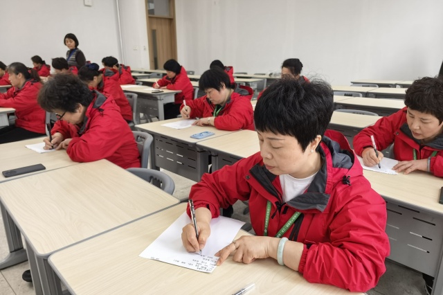 此次摸底测试以笔试形式进行,内容涵盖学生姓名与对应宿舍号、班级、辅导员姓名等。考试现场,宿管老师们全神贯注地投入作答中,展现出了极高的专注度和敬业精神。她们深知,准确了解学生和辅导员老师的信息是做好宿舍管理工作的基础,也是与师生建立良好关系、提供贴心服务的关键。
