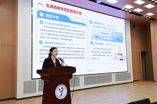 学生资助管理中心主任钱莉娇面向全体助贷学生开展国家助学贷款政策介绍及征信知识教育。她围绕助学贷款申请流程、还款规则、信用维护等核心内容展开深度讲解,从续贷操作指南到毕业后还款的具体规则包括还本宽限期、利率计算方式等关键信息,再到个人信用记录的维护方法和逾期影响等征信知识,都作了深入浅出的阐释,通过生动的案例分析和互动答疑,帮助同学们全面把握政策要点,树立正确的信贷观念和信用意识。
