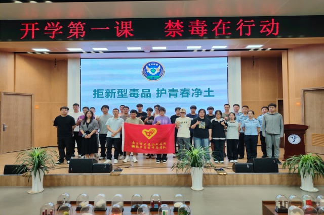 为深入贯彻落实国家禁毒工作决策部署,深化“一站式”学生社区综合管理体系建设,凝聚协同育人工作合力,增强青年学生识毒、防毒、拒毒意识,营造绿色健康、安全和谐的校园环境,2025年9月9日,由南京高职园牵头,区司法局与南京市大连山强制隔离戒毒所联合我校开展了“开学第一课:禁毒宣传进校园”专题教育活动。我校200余名学生代表参加活动。