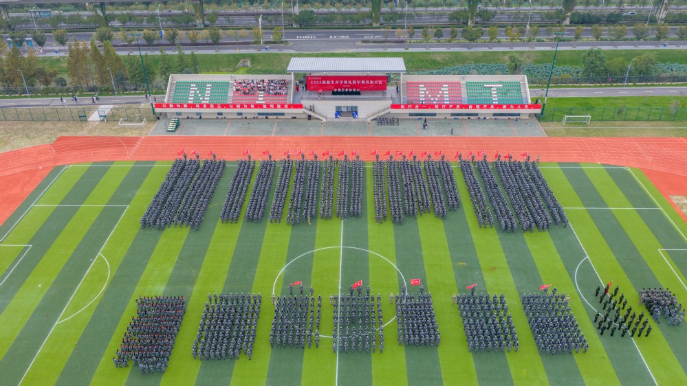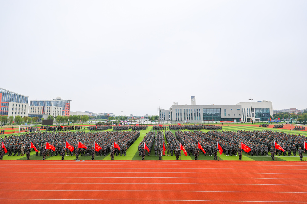 大会在庄严的国歌声中拉开帷幕。随后举行的军训成果汇报展示中,各营方队以昂扬的姿态依次通过主席台。国旗护卫队步伐铿锵,彰显护卫国旗的使命担当;信息工程系“奋进营”将代码的严谨融入队列规整;机械工程系“卓越营”展现工科学子的精工品质;自动化工程系“敏行营”演绎智能时代的精准协同;人文社科系“看齐营”彰显人文底蕴与军人品格的交融;电子工程系“慎行营”展现电子人的严谨专注。同学们整齐的步伐、响亮的口号,充分展现了军训取得的丰硕成果。