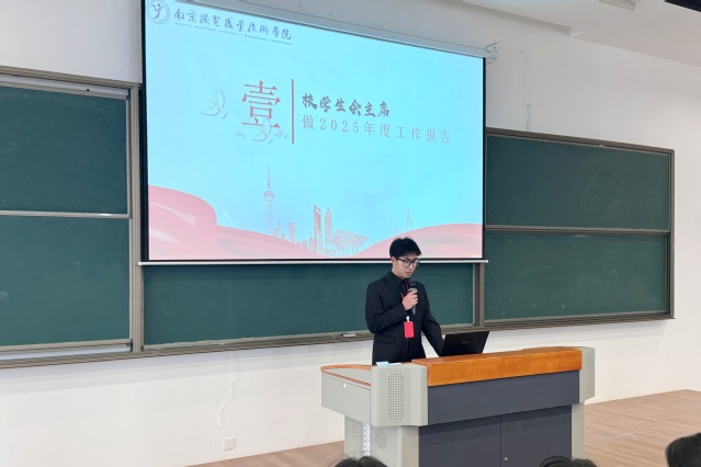 校学生会主席葛彦成宣读2025年度工作报告,汇报过去一年校学生会在思想引领、心理健康、文化体育、实践服务、组织建设等方面取得的扎实成效。校学生会始终牢记服务初心,在活动中凝聚青年,在实践中锻炼队伍,在创新中提升影响,未来将继续深化服务内涵,拓宽工作载体,团结带领广大同学坚定理想信念、锤炼高尚品格、增长能力才干,为学校高质量发展与和谐校园建设持续贡献智慧与力量。