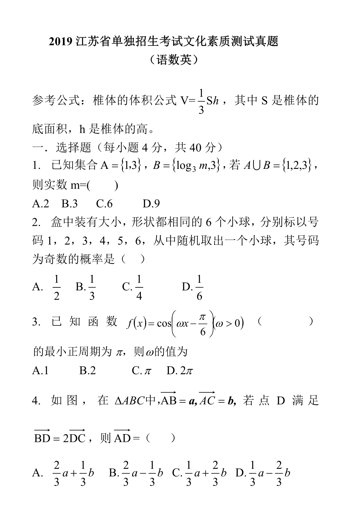 点击下载2019年江苏省提前招生真题卷(数学)