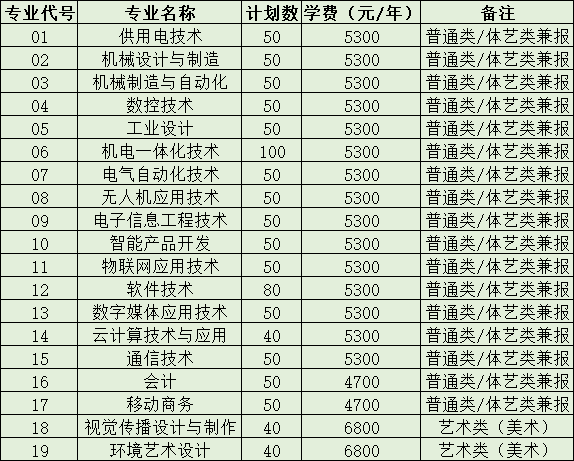 二、提前招生专业与代码