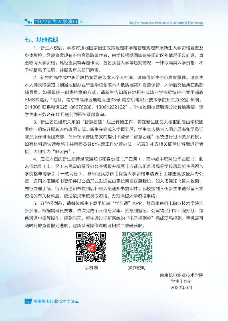 2022级新生入学报到须知