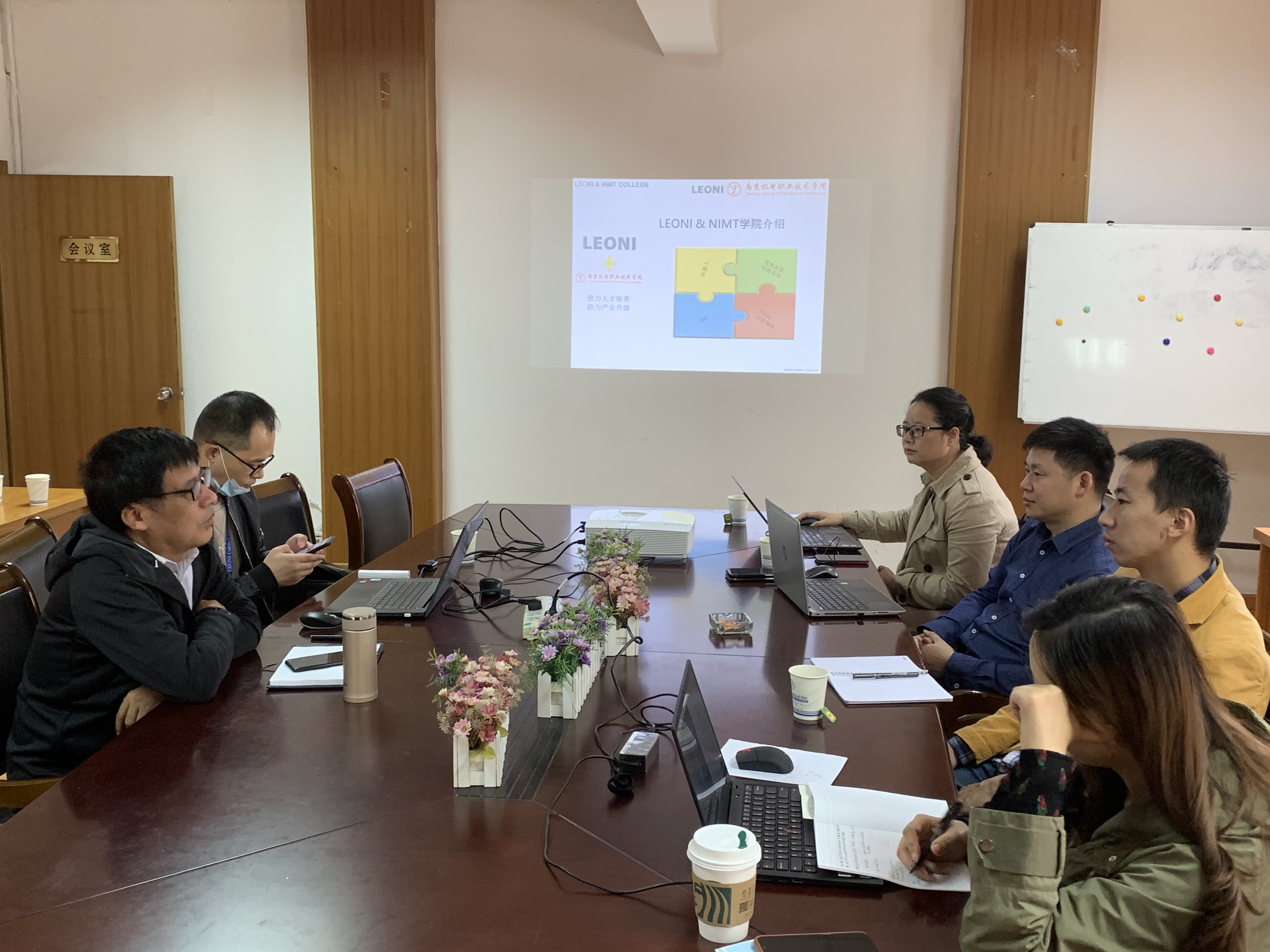 企业代表一行,首先参观了南机电-莱尼机器人学院实训基地,随后校企双方就如何开展合作进行了会谈。潘理平院长先介绍了学院办学的基本情况及人才培养的模式、建设智能制造学院方面的举措。随后由莱尼工程师阮畅介绍了学院和莱尼集团的合作模式以及南机电-莱尼机器人学院的柔性培训课程。海康威视和上海大众的企业代表也就企业概况、校企合作现状分别作了介绍。