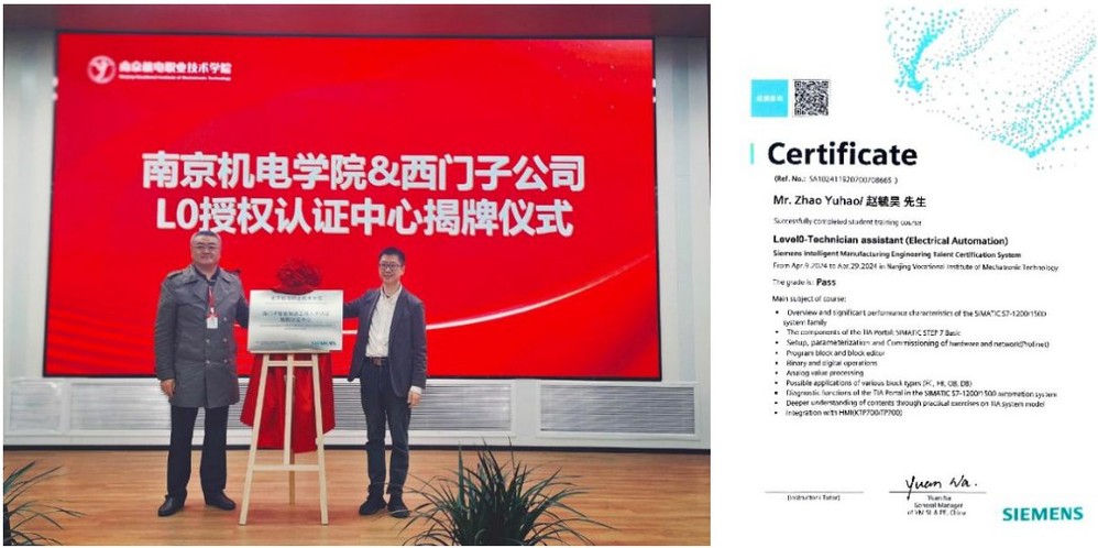 2024年3月28日,开云手机官方版页面登录入口举行“西门子-南京机电L0授权认证中心签约揭牌仪式暨西门子L0教师认证结业仪式”,江苏省首家西门子L0授权认证中心落户学校。 至今已完成开云手机官方版页面登录入口、江苏城市职业学院等专科院校的培训工作,有效解决了地方智能制造企业对高技能人才的需求问题,受到广泛好评。