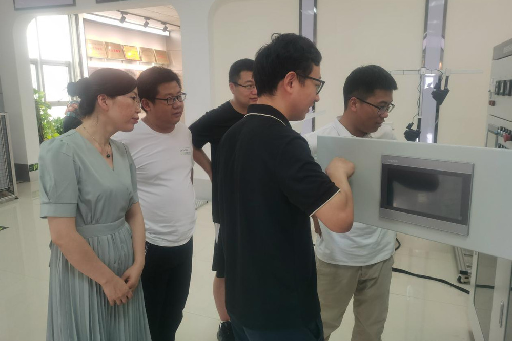 刘慰钊经理带领教师参观了目前在研设备和产线。系部教师根据具体教学需求结合企业现有项目进行交流,丁旭东老师建议参与AGV虚拟仿真项目开发;袁芬和蒋可可老师建议参与基于六盘机器人分拣系统的物料自动分拣项目;吴杰老师建议在康尼原有大赛设备基础上进行优化改进;唐建伟老师从教学角度希望能够参与一些关于面向新型电力系统实训设备与继电保护实训设备研发的工作。对此刘经理也邀请专家进行了专项对接。