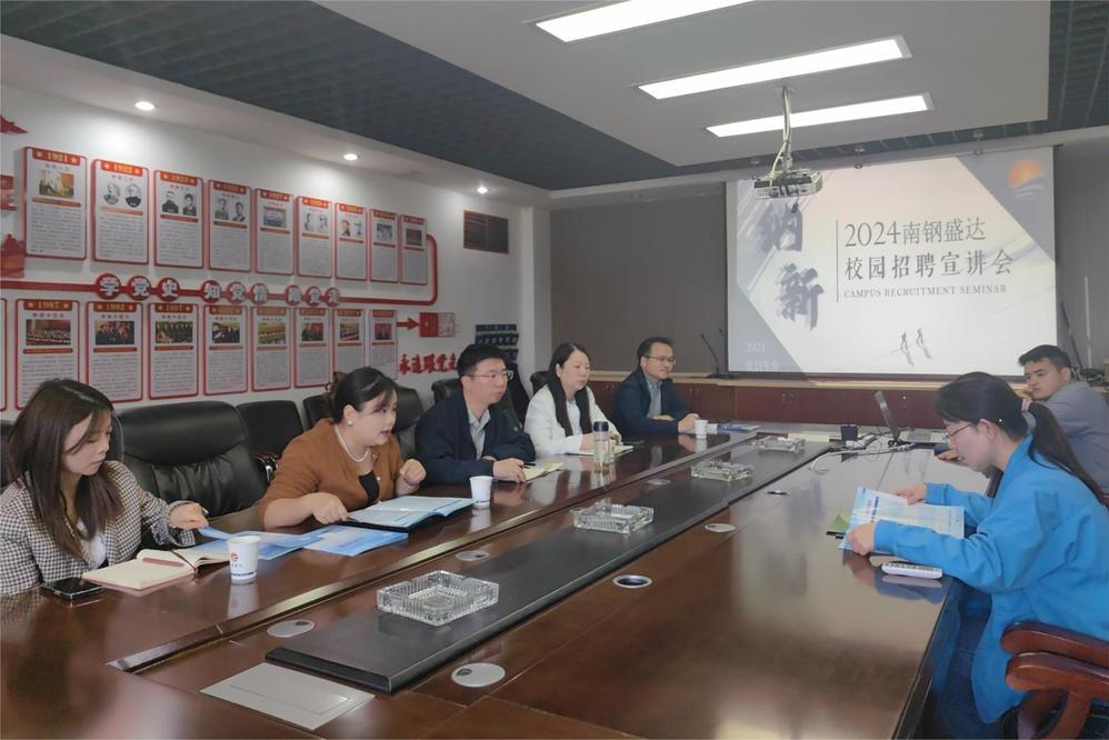 南京钢铁集团盛达实业有限公司是一家以从事非金属矿物制品业为主的企业,企业主管马里克介绍了2024年校园招聘计划,围绕招聘岗位需求、实习管理、工作环境等方面进行了详细介绍。随后双方就人才培养、实习生管理等方面进行了座谈交流。