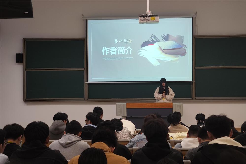 会上,孟丹同学从作者简介、内容简介、创作背景和作品赏析四个方面进行分享。《平凡的世界》这本书以由浅入深、平实近人的文风为大家展现了一幅中国特色社会主义建设初期那段看似平凡实则波澜壮阔的历史画卷。