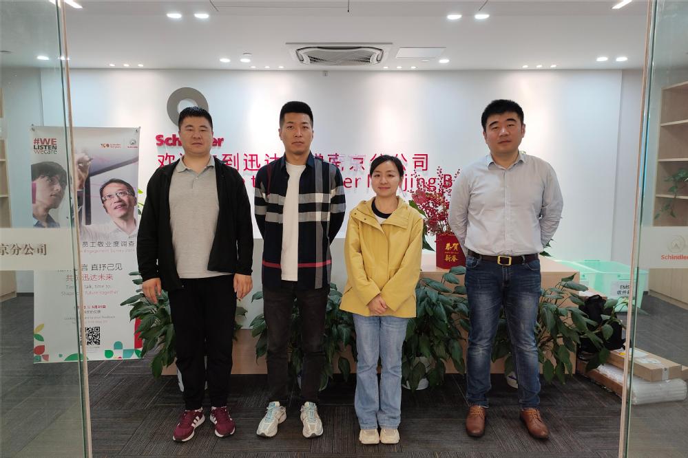 迅达(中国)电梯有限公司南京分公司人事主管张主管、维保主管付经理就21级学生实习情况与两位老师进行了详细沟通,并向老师介绍迅达电梯员工培训体系、学生实习过程中专业技能的薄弱点等,两位主管给专业人才培养提出了意见和建议。
