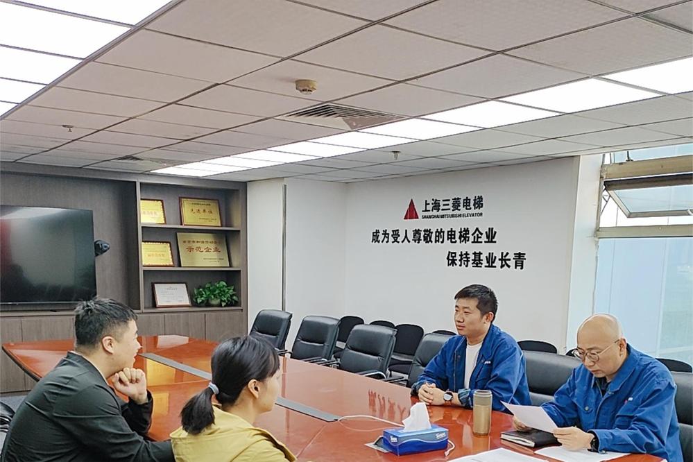 叶泉、蔡可义与上海三菱电梯有限公司江苏分公司秦勇泉教务长就21级学生实习情况进行了细致交流,双方就三菱电梯产业学院的建设进行了详细讨论。