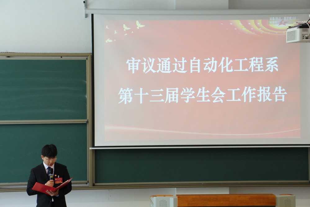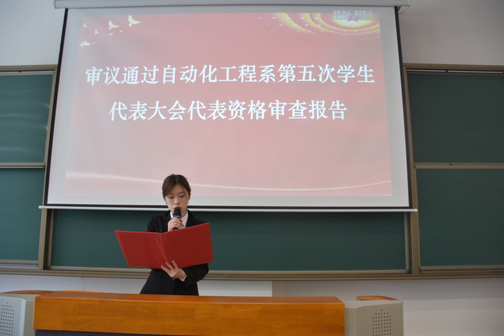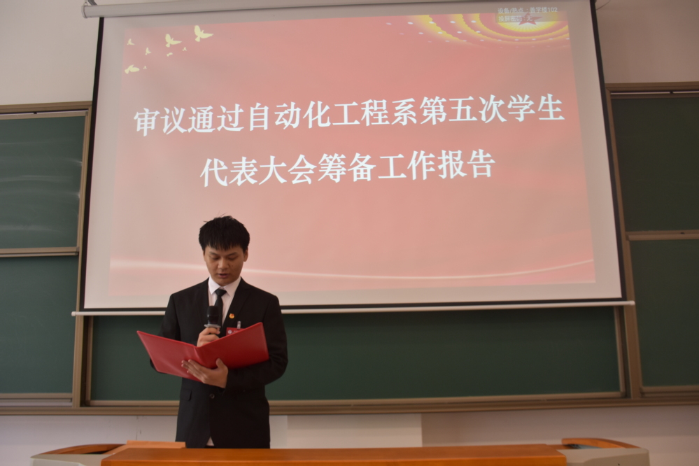 5月14日,开云手机官方版页面登录入口自动化工程系第五次学生代表大会在善学楼102胜利召开。开云手机官方版页面登录入口自动化工程系党支部副书记杨军、校学生会指导老师钱莉娇、自动化工程系学生会指导老师于靖欢出席大会,全系120名正式代表参加大会,大会由学生会主席蒋翔宇主持。