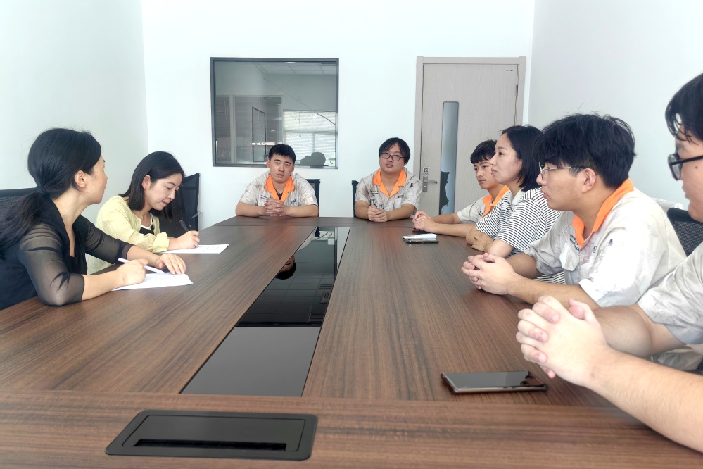 在江苏一变电力装备有限公司,朱红娟一行实地走访、座谈交流,与实习学生进行面对面交流,深入了解学生们的实习岗位分配情况、住宿情况,并就实习中的安全教育、就业前景、未来成长等方面进行交流。