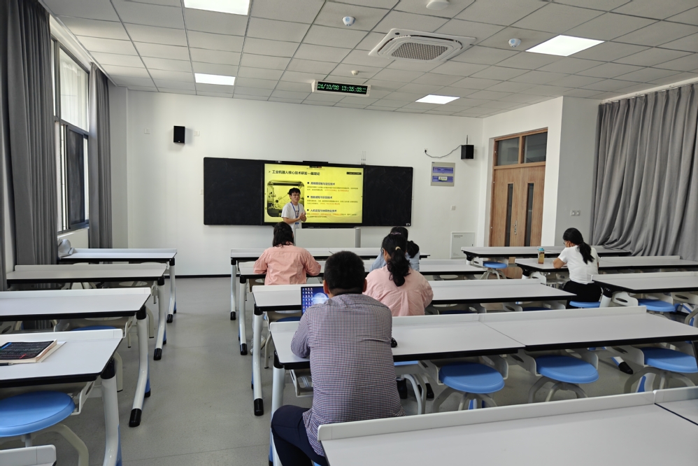 会上,张雪翔为大家详细阐述了机电教研室当前的三大核心科研方向:第一,工业机器人方向。该方向将聚焦于工业机器人核心技术研发、系统集成与应用等领域。第二,电梯方向。该研究将涵盖电梯驱动、控制、材料与结构、电梯智能化与自动化以及电梯节能环保等多个方面。第三,航天特色方向。结合我校的航天特色,教研室将探索卫星制造与组装中的工业机器人应用,为航天领域的智能化、自动化发展贡献力量,助力我国航天事业的蓬勃发展。随后,张雪翔介绍了多种实用的科研工具,包括论文检索平台、算法验证软件以及科研制图工具等,这些工具将有效提升教师的科研效率与质量,助力科研工作的顺利开展。