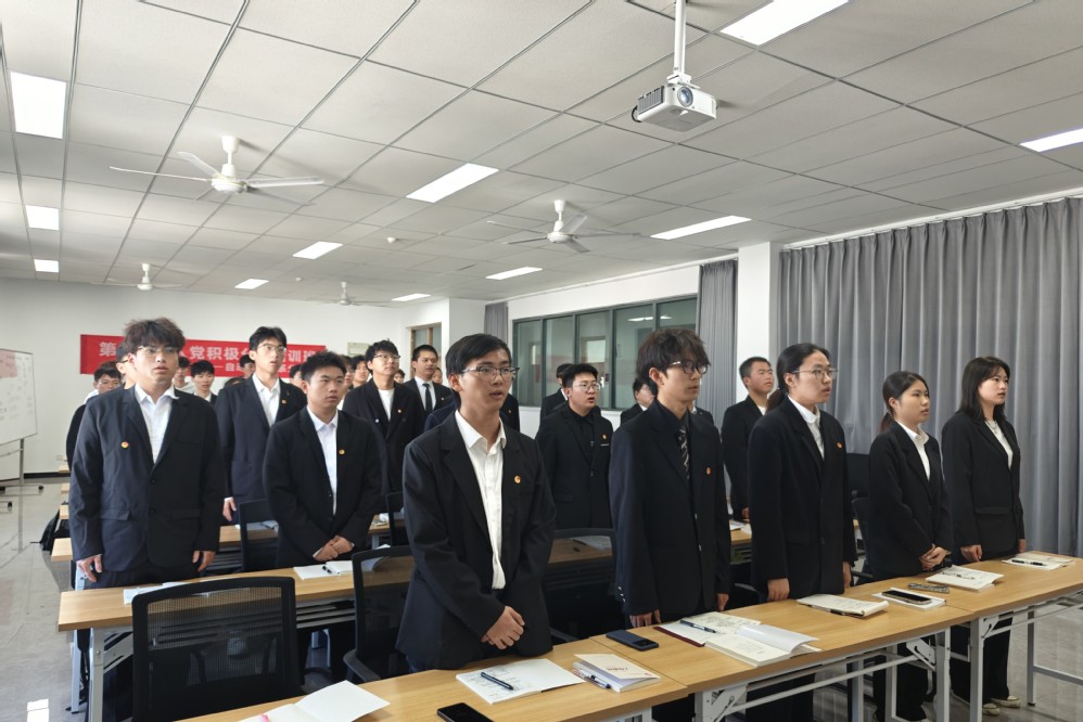 开班仪式在庄严的国歌中拉开序幕。支委会成员周笛、于靖欢、唐建伟分别向学员介绍了此次培训的时间、形式及纪律要求,强调学员要坚定信仰、好学、实干、律己,鼓励学员追求更高的目标,准备接受党组织的考验。