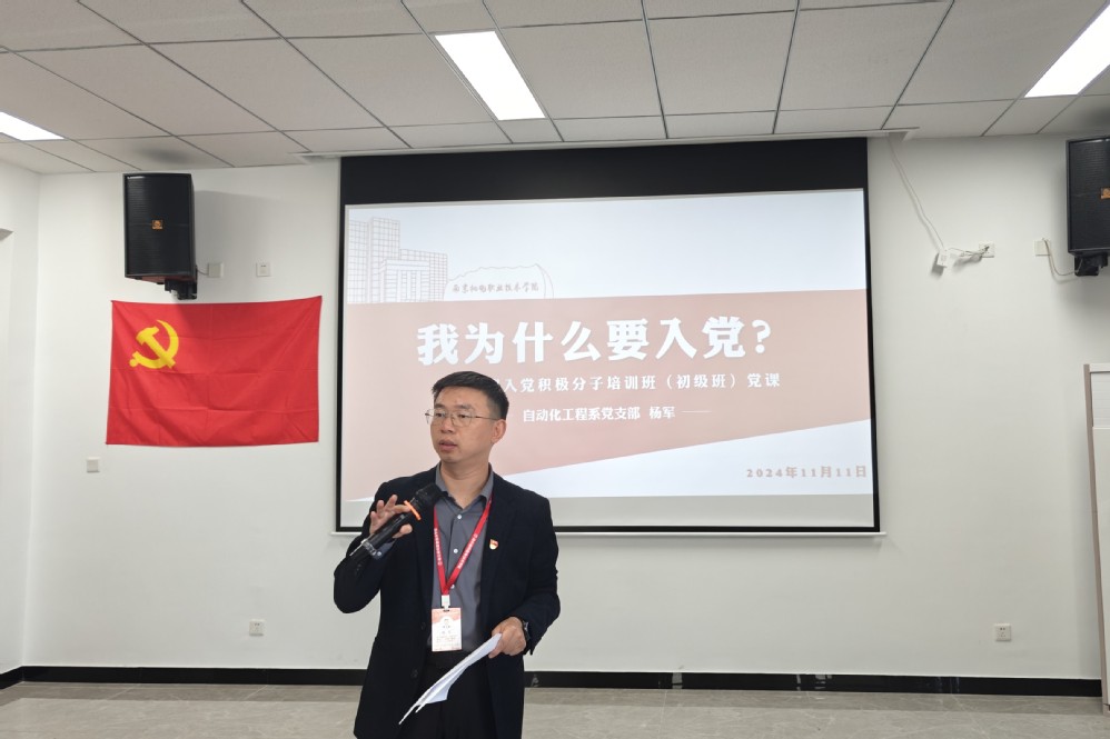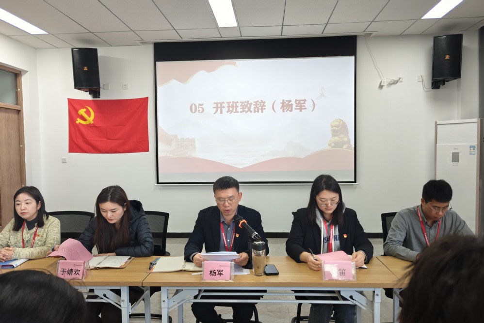 开班仪式结束后,杨军给全体入党积极分子做开班第一讲《我为什么要入党》。他首先以“成为入党积极分子意味着什么”这个问题作为切入点,通过生动案例为全体学员阐述了什么是入党动机以及为什么要端正入党动机。他强调,要深刻认识身份的转变,充分发挥模范作用,以实际行动积极向党组织靠拢。希望全体学员在培训期间遵守纪律要求,端正学习态度,不断提高自身政治理论水平和党性修养,争取早日加入中国共产党。