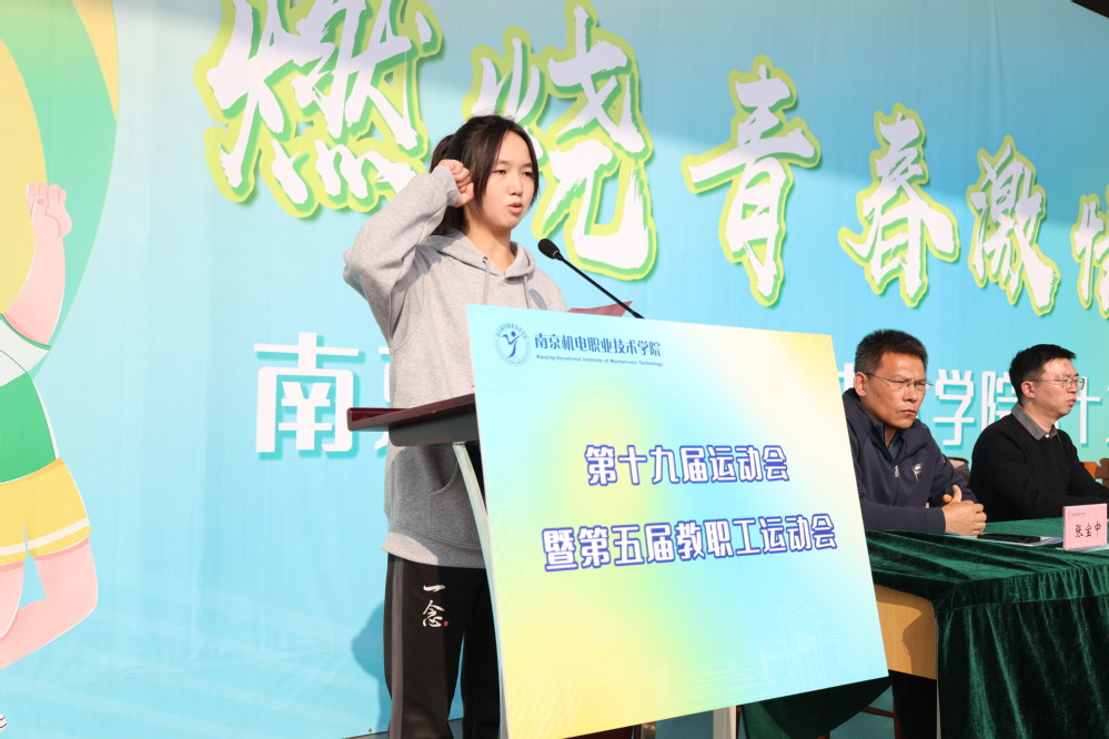 电气自动化技术231班马天鹰代表全体运动员庄严宣誓,在比赛中遵守规则,尊重裁判,尊重对手,服从安排,以饱满的精神和积极向上的态度完成各项比赛。