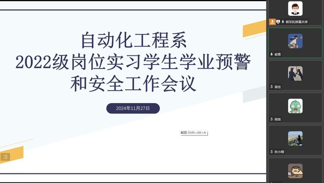 学业成绩是贯穿大学生活的主线,是衡量大学生成长成才的重要指标,也是学生学习状态的直观呈现。为切实加强岗位实习学生的过程管理,引导学生顺利完成学业,保证人才培养质量,同步筑牢岗位实习安全屏障,11月27日晚,自动化工程系召开2022级学生岗位实习安全管理暨学业预警工作会议。会议由系党支部副书记杨军主持,系教务秘书邢子然、就业干事俞青和全体2022级专兼职辅导员参加会议。