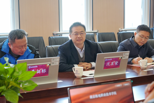 126日,白云电气集团有限公司副总经理、南京电气科技集团有限公司总经理沈其荣一行来我校考察,就进一步推进校企合作、深化产教融合进行座谈交流。学校党委书记、校长周庆礼,党委委员、副校长刁爱军,科研及校企合作处处长李木香,自动化工程系副主任张海红、党支部副书记杨军和学工处处长助理殷凯参加座谈会