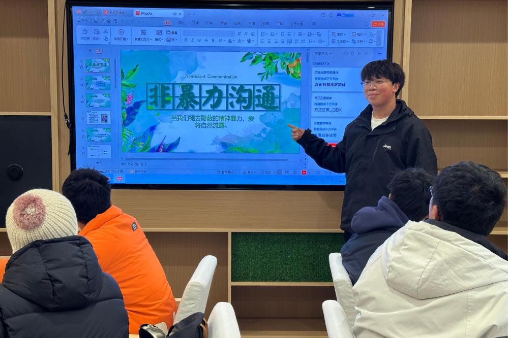 于靖欢向同学们分享了美国心理学家马歇尔·卢森堡著作《非暴力沟通》的阅读感受与体验。非暴力沟通是一种人际交往的理念和技巧,旨在建立互信、增进理解,并以和平、尊重和合作为基础。这一概念的核心源自美国心理学家马歇尔·卢森堡的著作《非暴力沟通》。马歇尔·卢森堡于20世纪60年代创立了非暴力沟通理论,并通过多年的实践与研究完善了该理论。