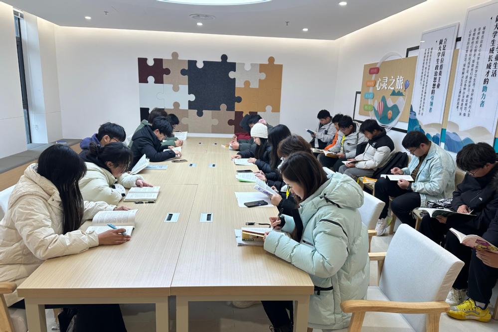 12月12日“鹿鸣”辅导员工作室成员于靖欢老师和自动化工程系学生会成员在“一站式”学生社区开展第十七期读书分享会。
