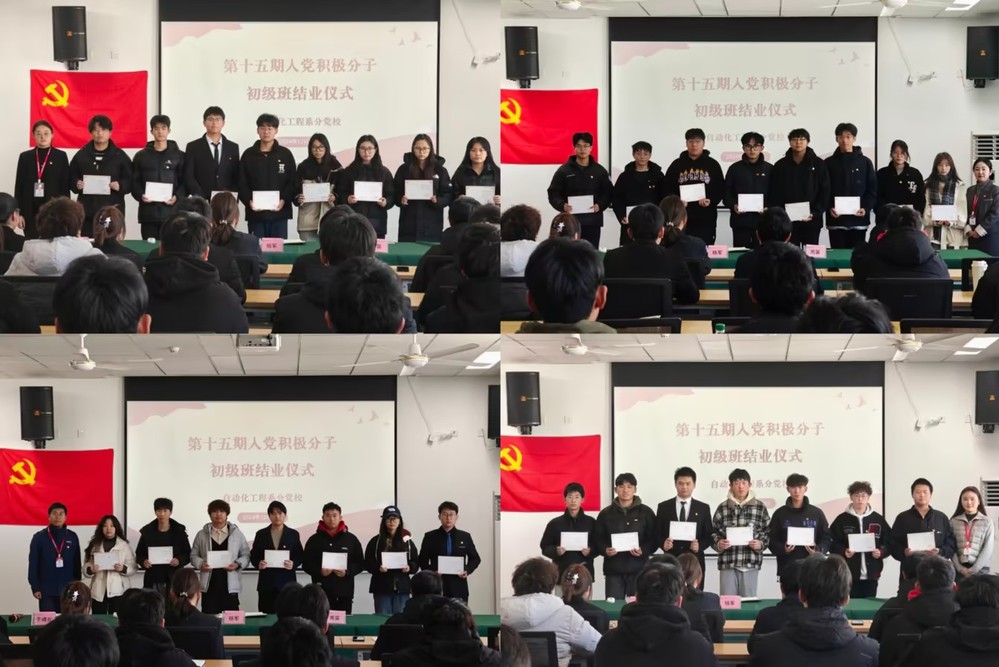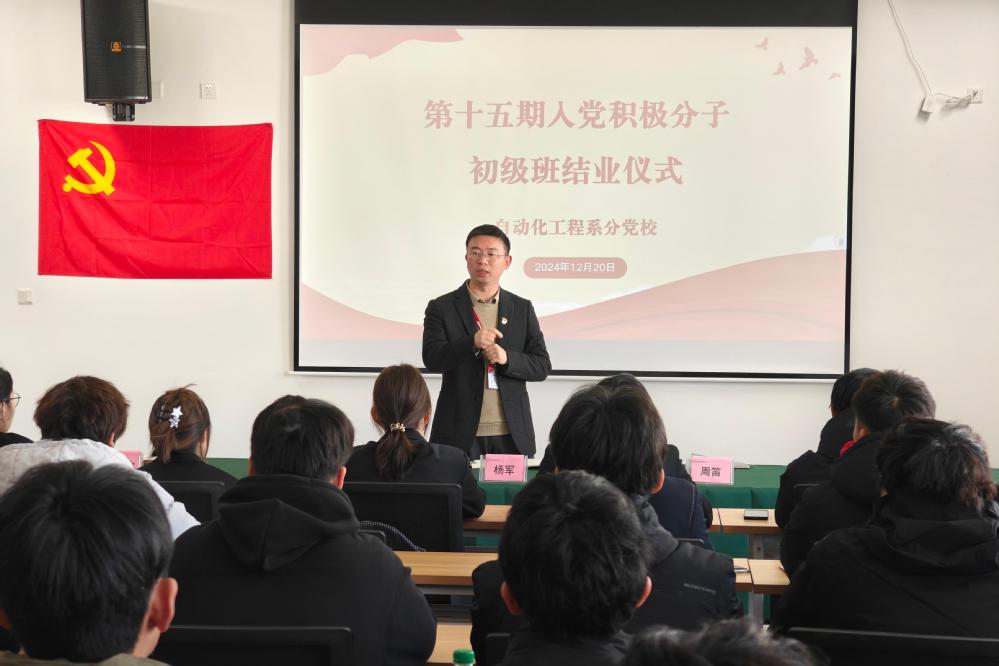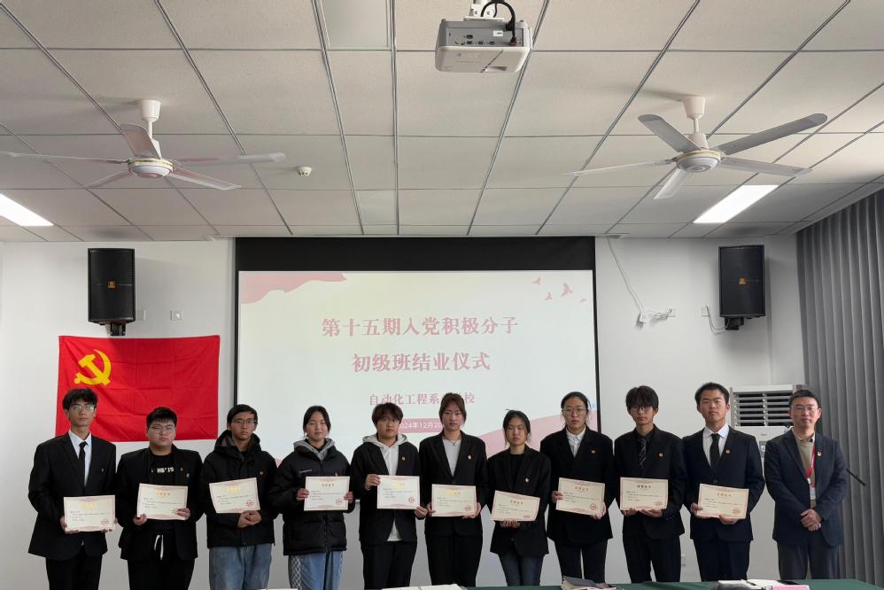 自动化工程系第十五期入党积极分子培训班(初级班)自11月11日开班至12月13日结业。培训班设有集中培训、实践活动、专题研讨等环节,多元化方式进行系统培训学习。41名学员经过综合考核和结业考试,顺利结业。10人获评优秀学员。